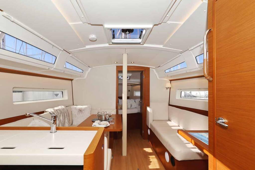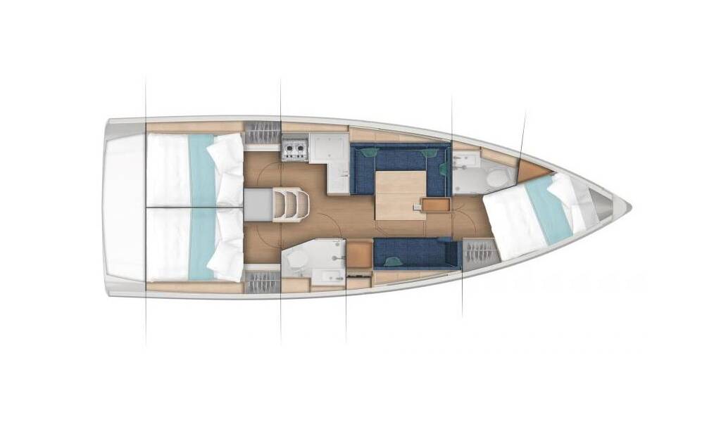 Barca a vela Sun Odyssey 380 Performance Mymia, costruito nel 2023 è ormeggiato in Marina Kornati, Biograd, Zadar, Croazia. Ha 3 cabine, può ospitare 6 + 2 persone e dispone di 2 bagni.