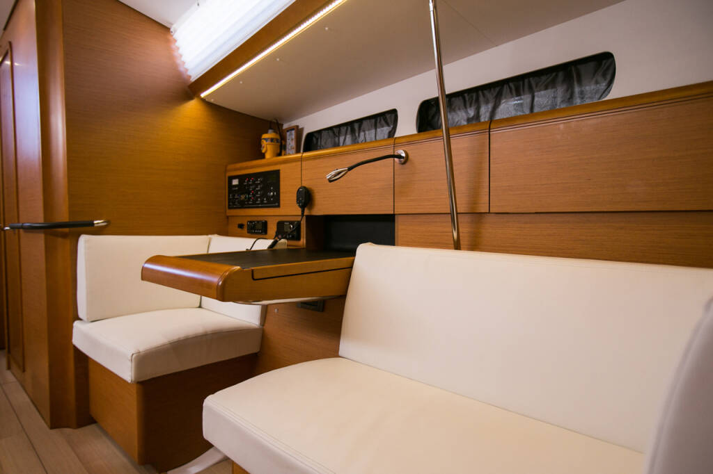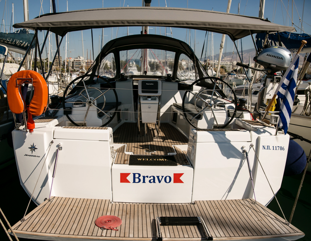 Barca a vela Sun Odyssey 449 Bravo, costruito nel 2017 è ormeggiato in Athens, Alimos marina, Atene/Saronico/Peloponneso, Grecia. Ha 4 cabine, può ospitare 8 persone e dispone di 2 bagni.