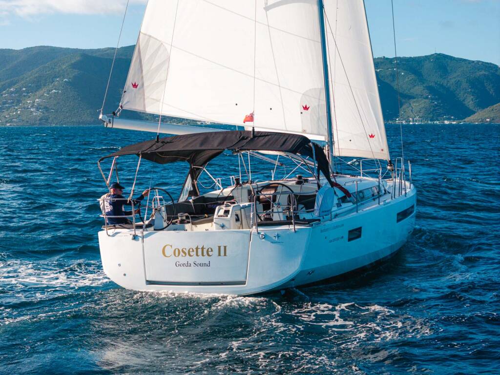 Barca a vela Sun Odyssey 490 Cosette II, costruito nel 2020 è ormeggiato in BVI, Tortola, Nanny Cay Marina, Isole Vergini Britanniche, Isole Vergini Britanniche. Ha 4 + 1 cabine, può ospitare 8 + 1 persone e dispone di 5 bagni.
