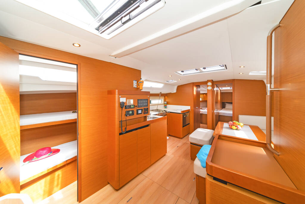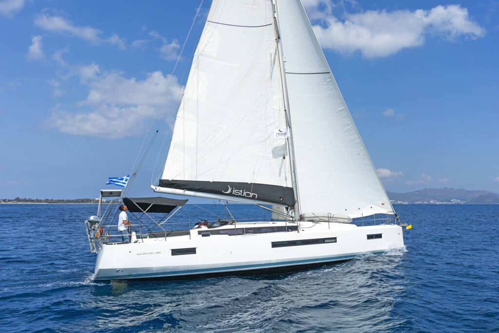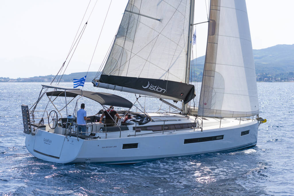 Barca a vela Sun Odyssey 490 Goldfish, costruito nel 2020 è ormeggiato in Kos, Kos Marina, Dodecaneso, Grecia. Ha 5 + 1 cabine, può ospitare 10 + 2 + 1 persone e dispone di 3 bagni.