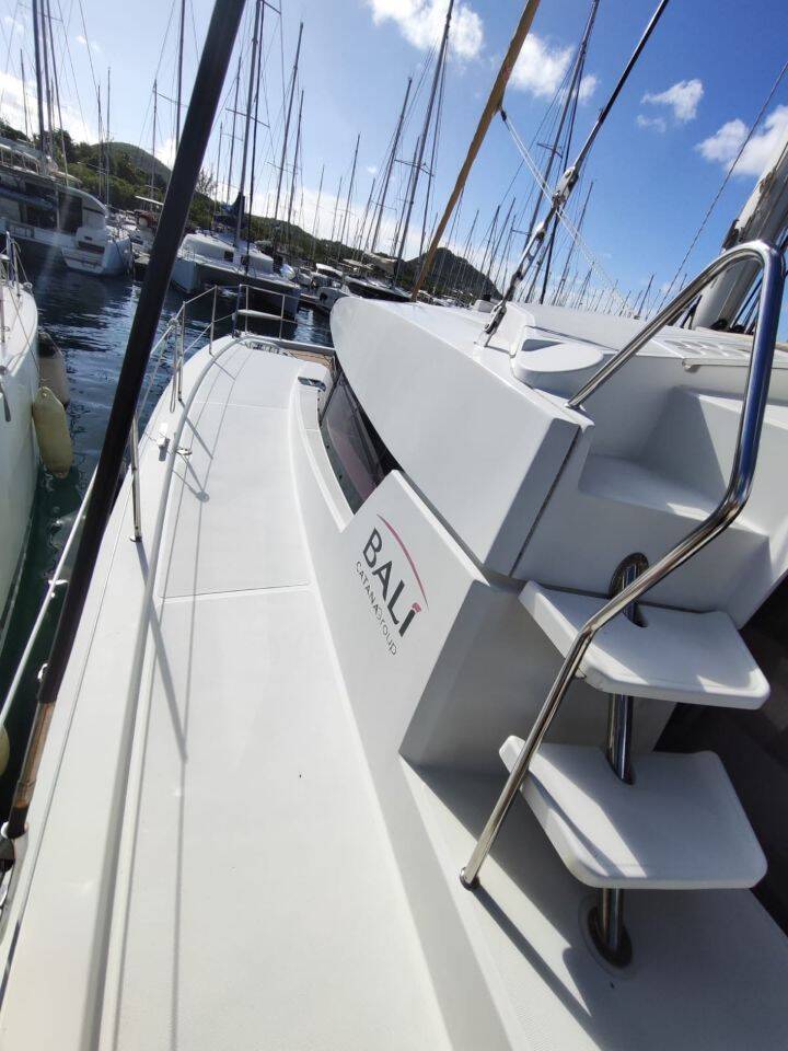 Katamarán Bali 4.0 LONJA, vyrobená v roku 2017, je ukotvená v Martinique, Le Marin, Martinik (Karibské Holandsko), Karibské Holandsko. Má 4 + 2 kajút, poskytuje ubytovanie pre 8 + 2 + 2 ľudí a má 4 toalety.