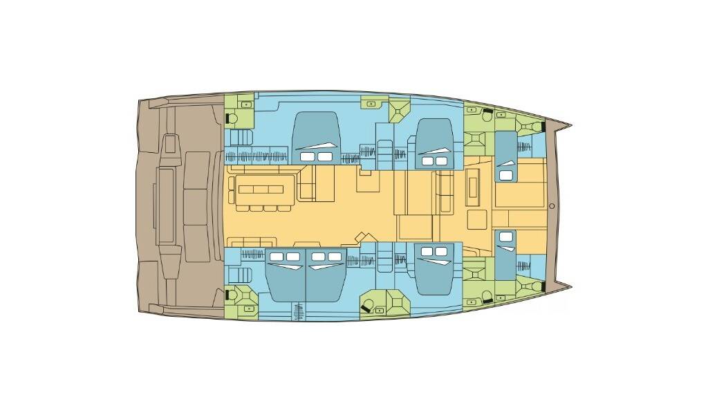 skipper and a hostess/cook are on board, 1 double cabin and 1 forepeak cabin will be