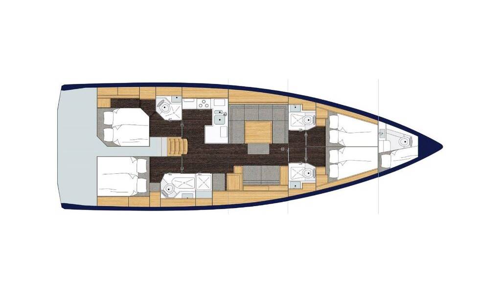 Plachetnica Bavaria C50 Style Moya One, vyrobená v roku 2024, je ukotvená v Corfu, Gouvia Marina, Iónské ostrovy (Grécko), Grécko. Má 4 + 1 kajút, poskytuje ubytovanie pre 8 + 1 + 1 ľudí a má 4 + 1 toalety.