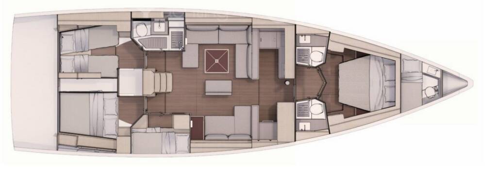 Plachetnica Dufour 530 Gringott, vyrobená v roku 2021, je ukotvená v Sardinia, Punta Nuraghe, Sardínia (Taliansko), Taliansko. Má 4 + 1 kajút, poskytuje ubytovanie pre 8 + 1 ľudí a má 3 + 1 toalety.