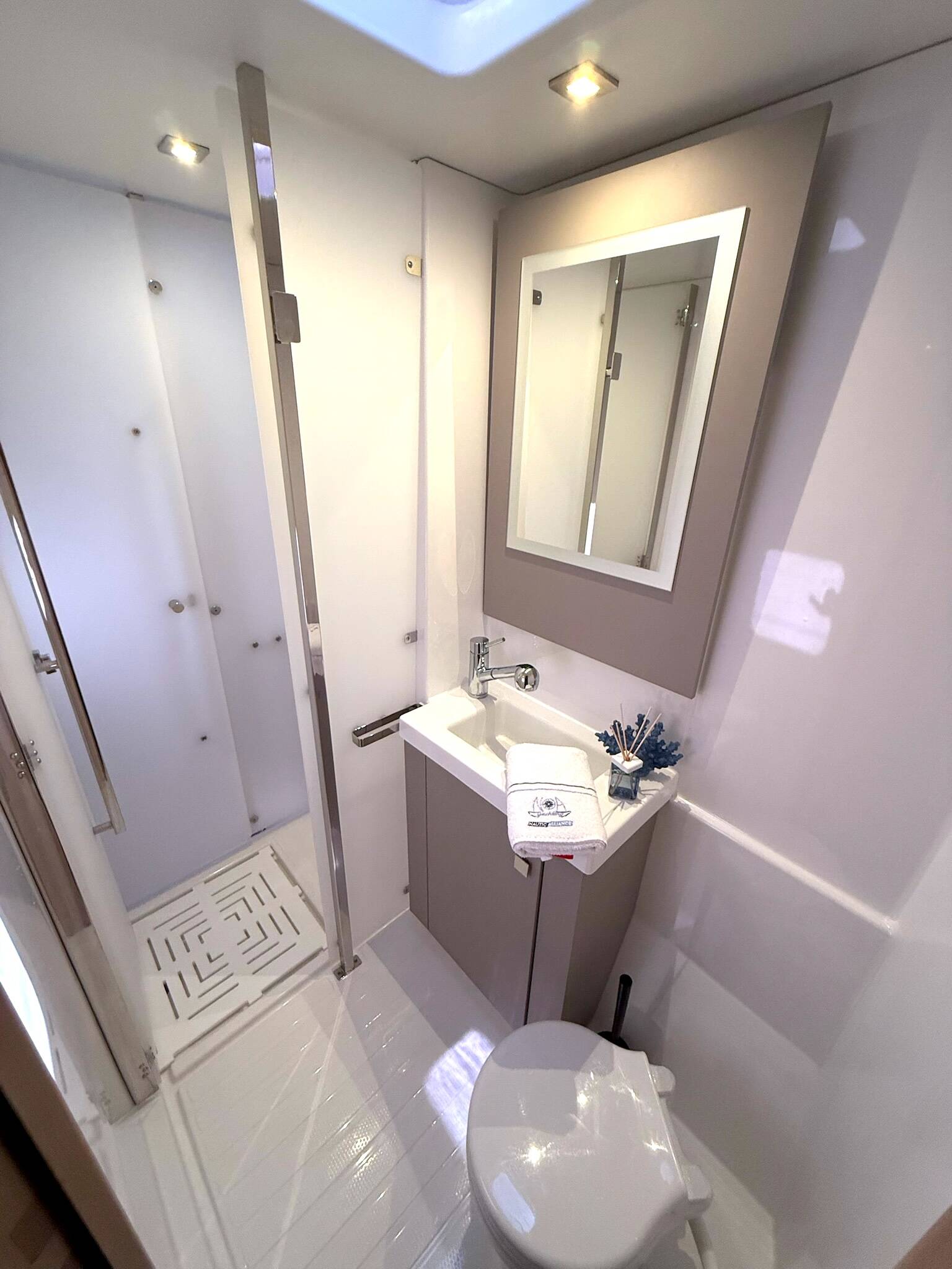 Katamarán Fountaine Pajot Astrea 42 Ocean Allure, vyrobená v roku 2025, je ukotvená v Split - Marina Kaštela, Splitský región (Chorvátsko), Chorvátsko . Má 4 + 2 kajút, poskytuje ubytovanie pre 8 + 2 + 2 ľudí a má 4 toalety.
