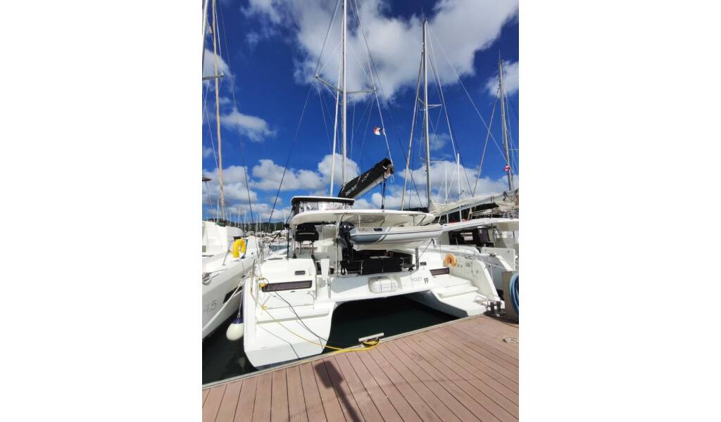 Katamarán Lagoon 42 VIOLET, vyrobená v roku 2024, je ukotvená v Martinique, Le Marin, Martinik (Karibské Holandsko), Karibské Holandsko. Má 4 + 2 kajút, poskytuje ubytovanie pre 8 + 2 + 2 ľudí a má 4 toalety.