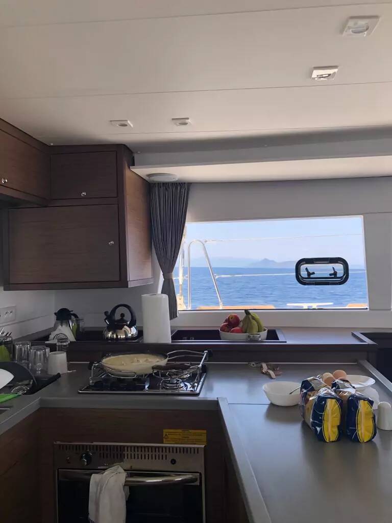 Katamarán Lagoon 450 F EVI, vyrobená v roku 2020, je ukotvená v Corfu, Gouvia Marina, Iónské ostrovy (Grécko), Grécko. Má 4 + 2 kajút, poskytuje ubytovanie pre 8 + 2 + 2 ľudí a má 4 + 1 toalety.