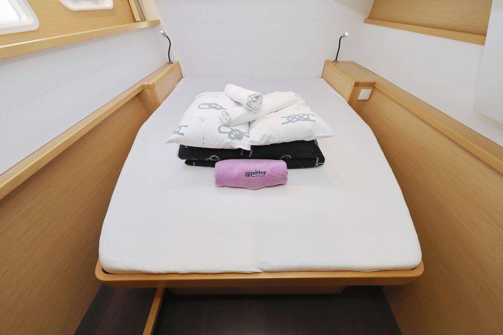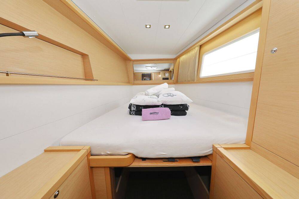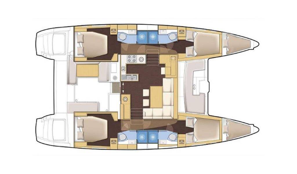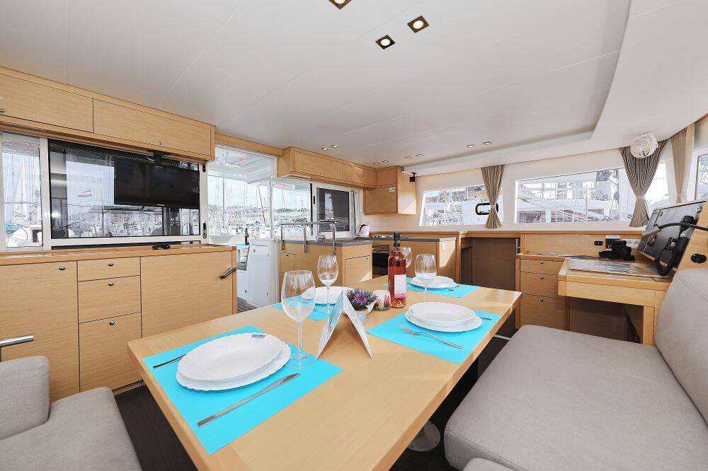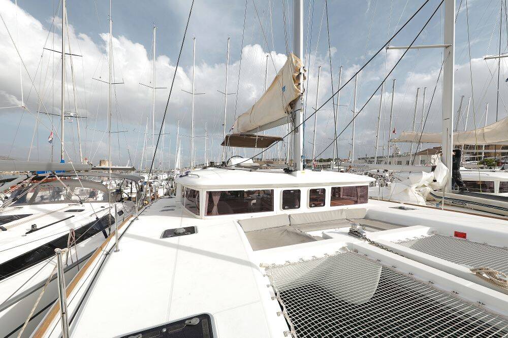 Katamarán Lagoon 450 F Lydia, vyrobená v roku 2015, je ukotvená v Trogir, Marina Trogir (ex.SCT), Splitský región (Chorvátsko), Chorvátsko . Má 4 + 2 kajút, poskytuje ubytovanie pre 8 + 2 + 2 ľudí a má 4 toalety.