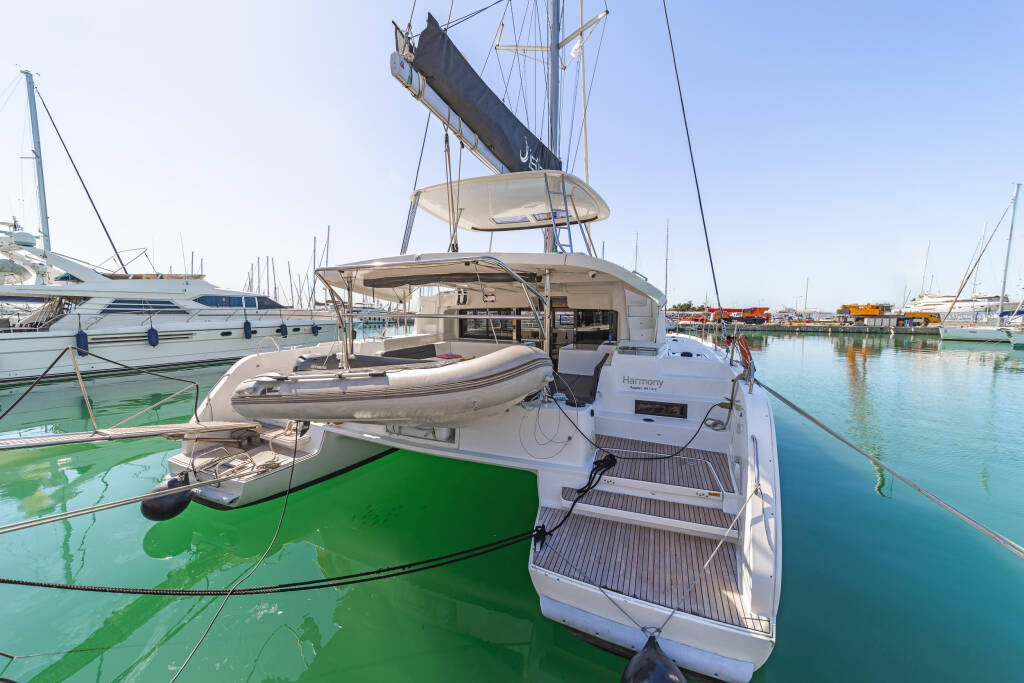 Katamarán Lagoon 46 Harmony, vyrobená v roku 2020, je ukotvená v Lavrion, main port, Athens area/Saronic/Peloponese, Grécko. Má 4 + 2 kajút, poskytuje ubytovanie pre 8 + 2 ľudí a má 4 + 1 toalety.