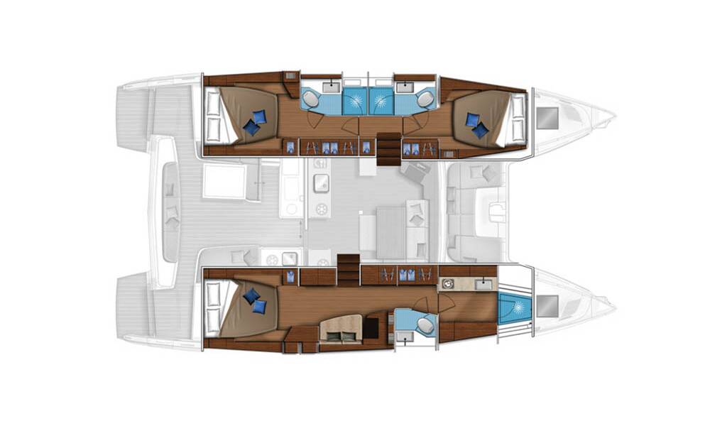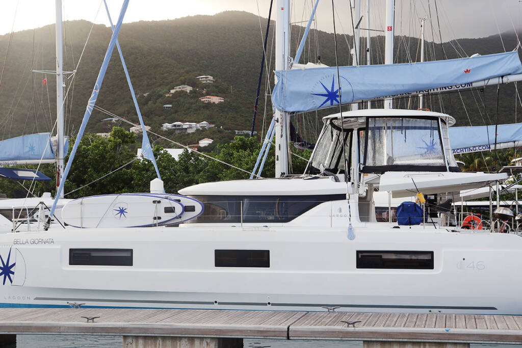 Katamarán Lagoon 46 OW Bella Giornata, vyrobená v roku 2023, je ukotvená v Marsh Harbour, Conch Inn Marina, Abaco ostrovy (Bahamy), Bahamy. Má 3 kajút, poskytuje ubytovanie pre 6 + 2 ľudí a má 3 toalety.