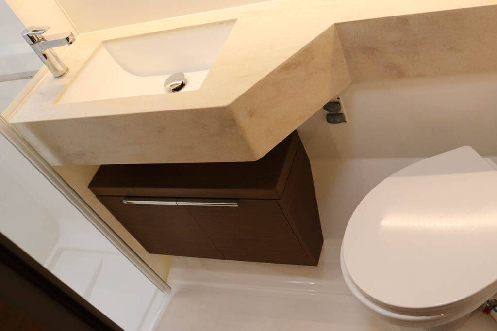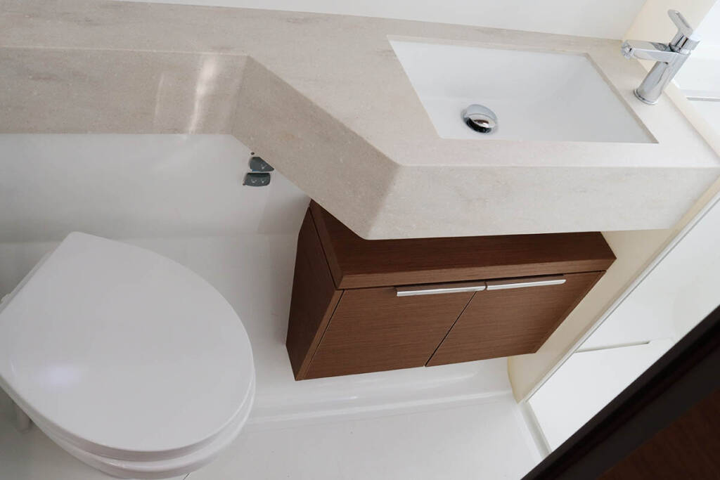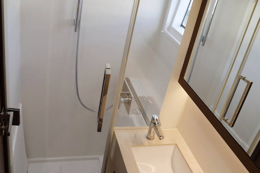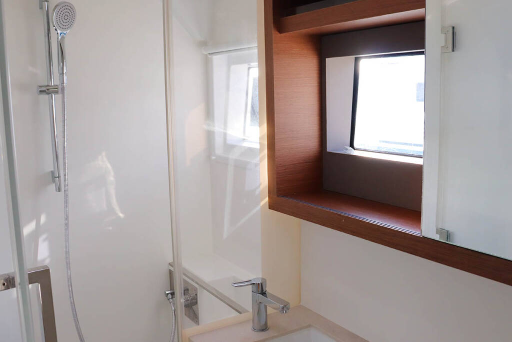 +provisioning ; Crew on board must have their own toilets/ showers. If either a skipper or a hostess/cook is on board, 1 double cabin will be required for him/her. If both a skipper and a hostess/cook are on board, 1 double cabin and 1 forepeak cabin will be required for them. Exceptions exists for specific layouts, Sales Agents will provide more details about the different boat models.