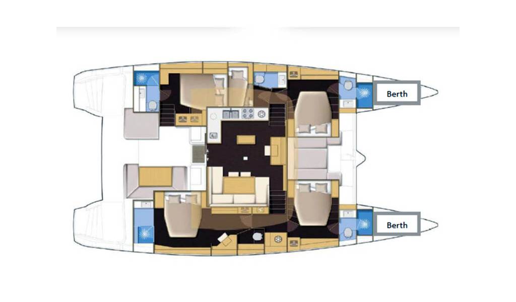Katamarán Lagoon 52 F Costabella, vyrobená v roku 2018, je ukotvená v Seychelles, Eden Island Marina, Mahé (Seychely), Seychely . Má 5 + 2 kajút, poskytuje ubytovanie pre 10 + 2 ľudí a má 5 toalety.